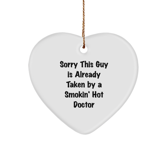Funny Doctor Heart Ornament Gifts from Men to Friends, Coworkers, Family for Christmas - Sorry This Guy Is Already Taken By A Smokin' Hot Doctor