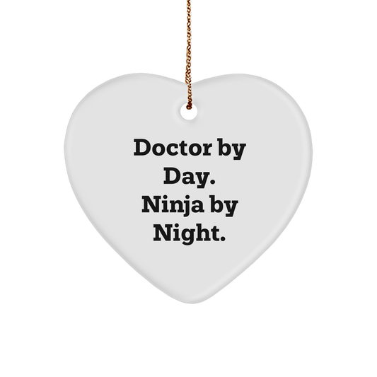 Doctor Gifts from Friends, Funny Heart Ornament for Christmas, 'Doctor By Day. Ninja By Night.'