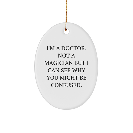 Funny Doctor Gifts from Friends - 'I'm A Doctor. Not A Magician But I Can See Why You Might Be Confused.' Oval Ornament for Christmas