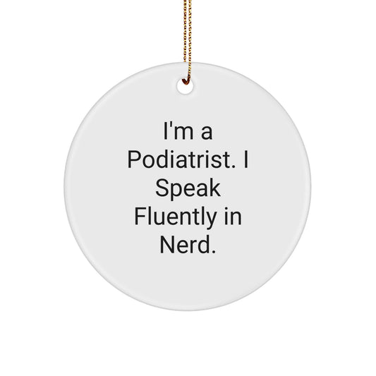 Podiatrist Gifts, Circle Ornament for Christmas, 'I'm A Podiatrist. I Speak Fluently In genius.' Quote Funny Ornament for Friends, Coworkers, Family