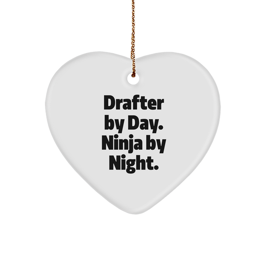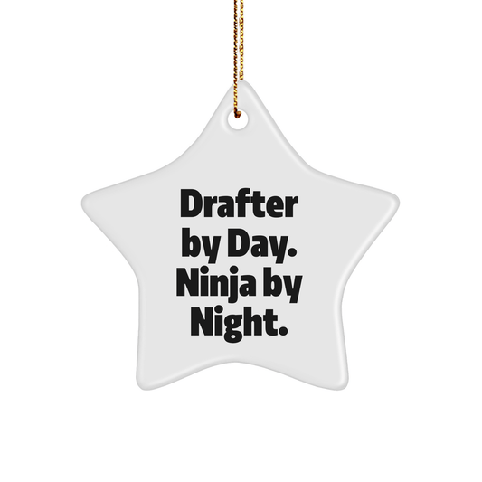 Drafter by Day. Ninja by Night. Star Ornament, Funny Christmas Unique Gift for Drafter, Gifts from Men to Women, Family or Friends