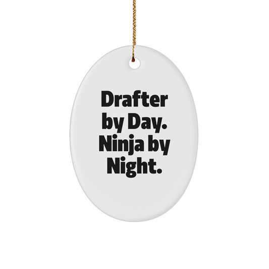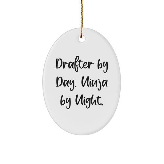 Drafter Gifts by Day, Ninja Gifts by Night, Oval Ornament, White, for Christmas, Gifts from Friends, Gifts for Drafter