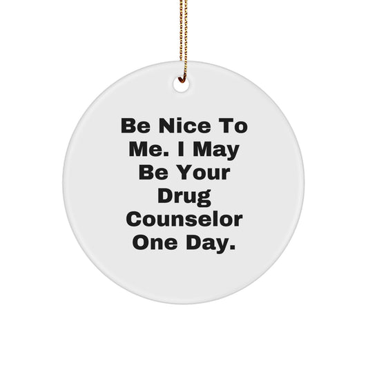 Gifts from Friends for Drug Counselor, Be Nice To Me. I May Be Your Drug Counselor One Day., Funny Christmas Circle Ornament, Unique Presents for Men, Women, Coworkers, Family