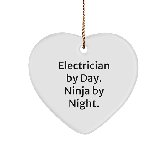 Electrician Gifts from Men - Heart Ornament, Electrician By Day. Ninja By Night. - Christmas Unique Gifts