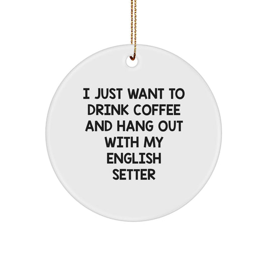 English Setter Dog Lovers Gifts from Friends for Christmas - 'I Just Want To Drink Coffee' Circle Ornament, Fun and Humorous Present for Men, Women, Family