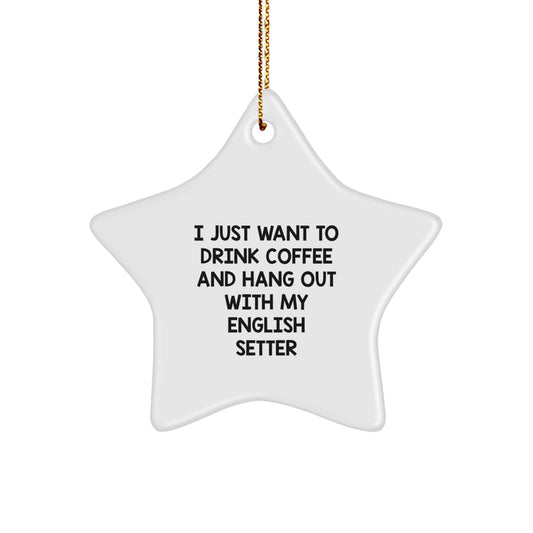 Funny English Setter Dog Gifts from Friends to Family - I Just Want To Drink Coffee And Hang Out With My English Setter Heart Ornament for Christmas