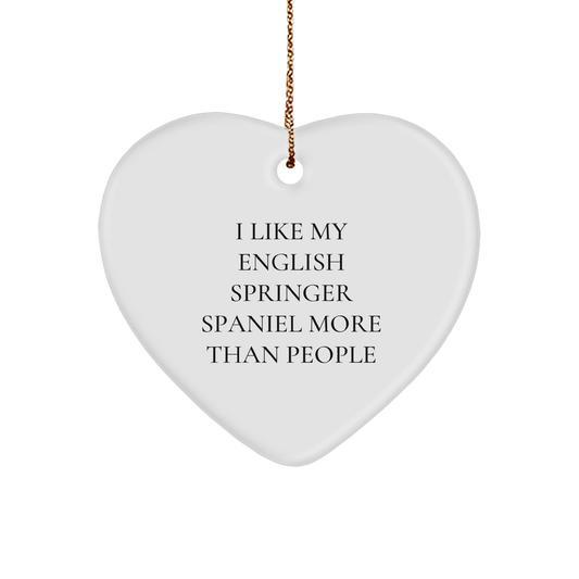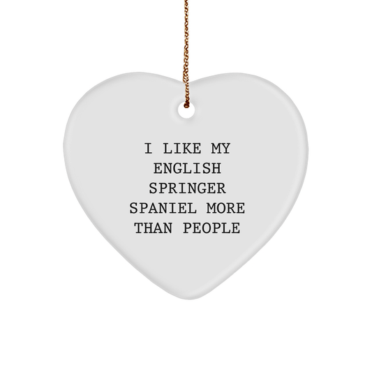 English Springer Spaniel Dog Heart Ornament, 'I Like My English Springer Spaniel More Than People' Funny Quote, Gifts for English Springer Spaniel Dog, Christmas Unique Gifts from Friends to Family
