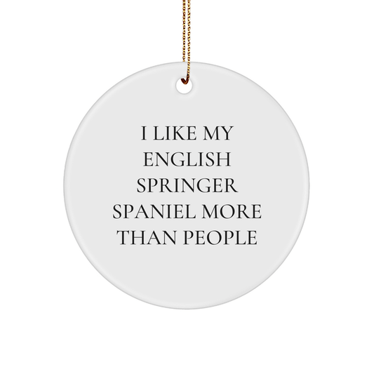 English Springer Spaniel Dog Lovers Gifts for Christmas - 'I Like My English Springer Spaniel More Than People' Circle Ornament, Gifts from Family for Friends