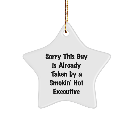 Gifts for Executives, Sorry This Guy Is Already Taken By A Smokin' Hot Executive Star Ornament, Funny, White, Star Shaped, Christmas Unique Gifts from Friends to Executive