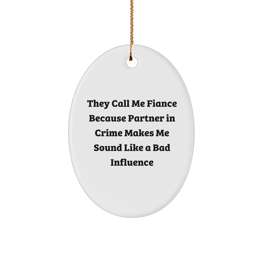 Fiance Gifts from Friends - Funny Oval Ornament for Christmas - 'They Call Me Fiance Because Partner In Crime Makes Me Sound Like A Bad Influence' - Unique Gift for Men