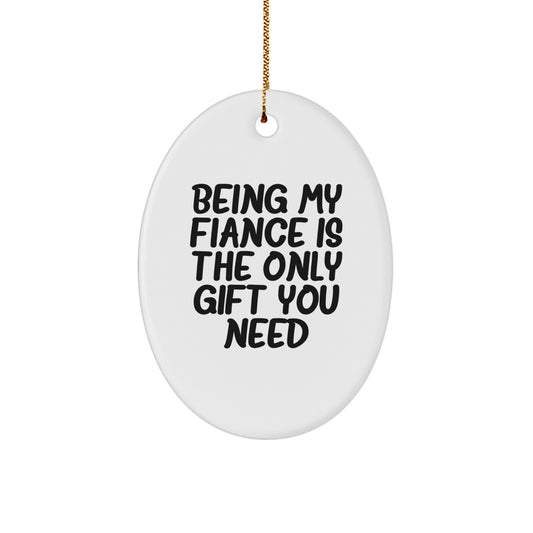 Fiance Gifts from Men for Christmas Unique Oval Ornament, Being My Fiance Is The Only Gift You Need, Funny Quote, Durable MDF Material, High-Gloss Finish, Perfect for Stress-Free Decorating