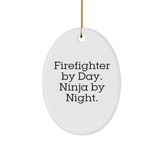 Firefighter Gifts from Friends - Oval Ornament, 'Firefighter By Day. Ninja By Night.' - Christmas Unique Gifts for Firefighter Men