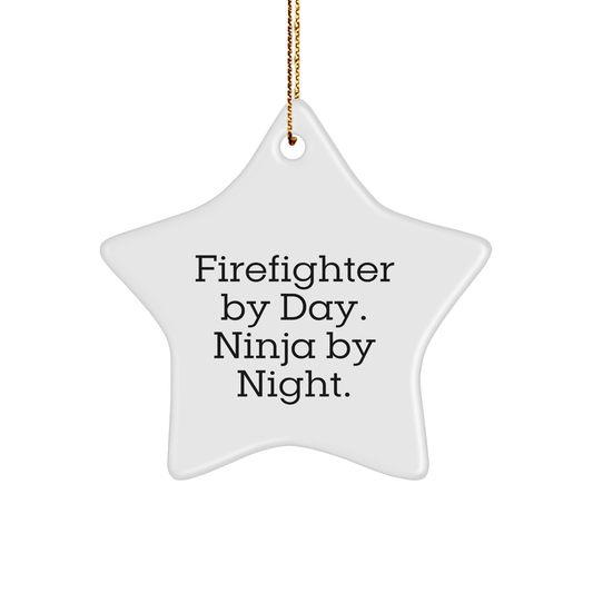 Firefighter Gifts from Men - Funny Star Ornament, 'Firefighter By Day. Ninja By Night.' for Christmas