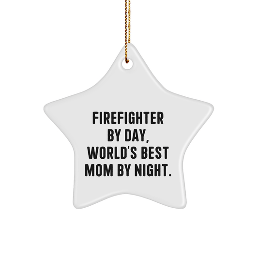 Firefighter Gifts from Mom - Star Ornament by Day, World's Best Mom By Night - Funny Christmas Unique Gift for Firefighter, Gifts for Firefighter, Men, Women, Friends, Coworkers, Family