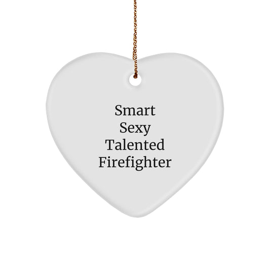 Sexy Firefighter Gifts from Friends, Heart Ornament for Men, 'Smart Sexy Talented Firefighter' Quote, Christmas Unique Gifts
