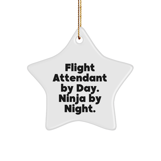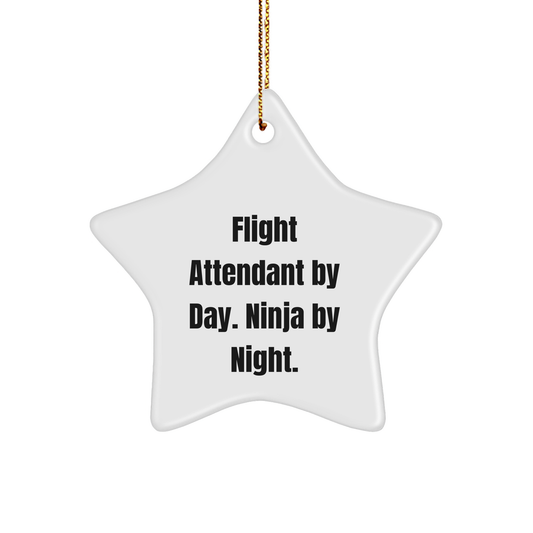 Flight Attendant Gifts, Star Ornament, Funny Quote: Gifts from Friends for Flight Attendant By Day. Ninja By Night. Christmas Unique