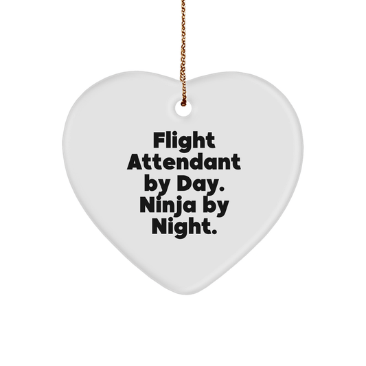 Flight Attendant Gifts from Men, Funny Heart Ornament for Flight Attendants, 'Flight Attendant By Day. Ninja By Night.' Christmas Unique Gift for Women, Coworkers, and Friends