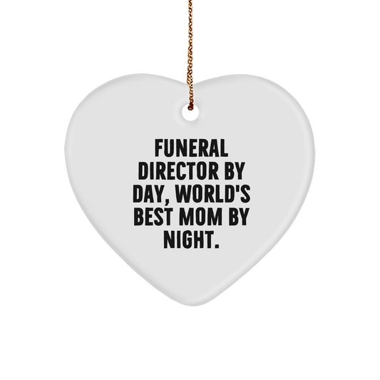 Funeral Director Gifts from Friends, Family - Heart Ornament, 'Funeral Director By Day, World's Best Mom By Night.' Quote, Christmas Unique Gifts