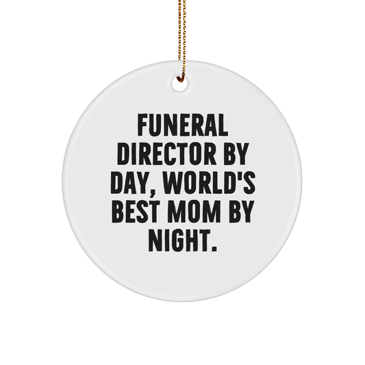 Funeral Director Gifts, Unique Christmas Unique Gifts from Friends, 'Funeral Director By Day, World's Best Mom By Night', Circle Ornament, Gifts for Funeral Director, Family and Friends