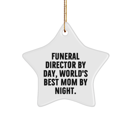 Funeral Director Gifts by Day, World's Best Mom by Night, Christmas Star Ornament, Gifts from Men to Funeral Director, Unique Christmas Unique Gifts