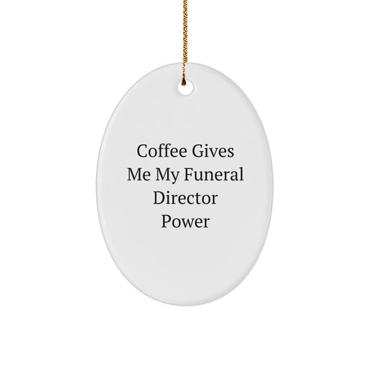 Funeral Director Oval Ornament Gifts from Friends, Family, or Coworkers - 'Coffee Gives Me My Funeral Director Power' - Unique Christmas Ornament