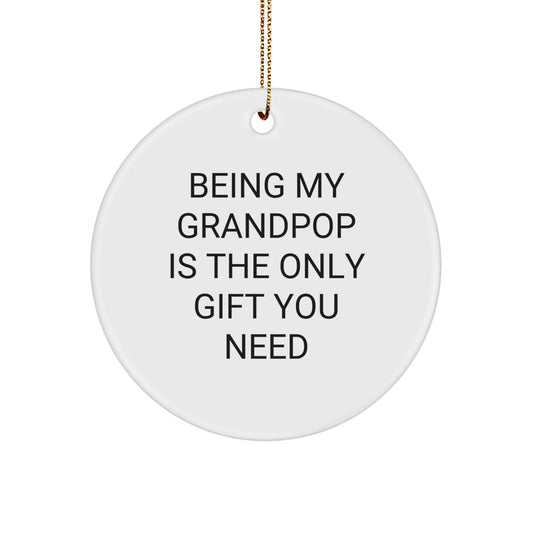 Funny Grandpop Gifts: 'Being My Grandpop Is The Only Gift You Need' Circle Ornament, Gifts from Friends to Family for Christmas