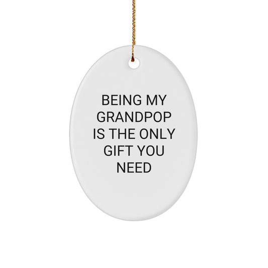 Grandpop Oval Ornament, Funny Quote 'Being My Grandpop Is The Only Gift You Need', Gifts from Family, for Grandpop, Unique Christmas Unique Gifts