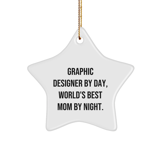 Funny Graphic Designer Gifts, Star Ornament, 'Graphic Designer By Day, World's Best Mom By Night.' - Christmas Unique Gifts from Mom to Graphic Designer