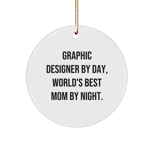 Graphic Designer Gifts from Friends - 'Graphic Designer By Day, World's Best Mom By Night' Christmas Circle Ornament, Gifts for Graphic Designer, Funny Mom Quote