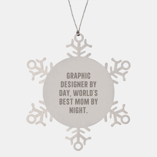 Graphic Designer Gifts from Friends - Snowflake Ornament, Funny Quote, Christmas Unique Gifts for Graphic Designer By Day, World's Best Mom By Night.