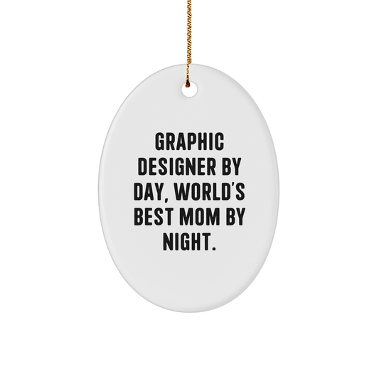 Graphic Designer Gifts, Graphic Designer By Day, World's Best Mom By Night., Oval Ornament, Funny Quote, Christmas Unique Gifts from Mom to Graphic Designer, Gifts for Graphic Designer