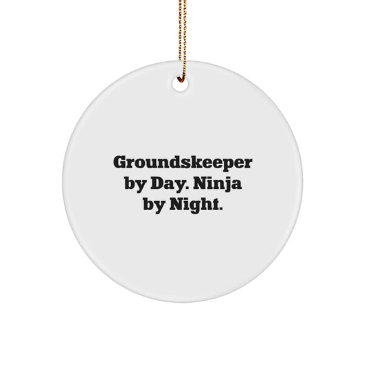 groundskeeper By Day. Ninja By Night. Circle Ornament Gifts from Friends for groundskeeper, Funny Christmas Decorations