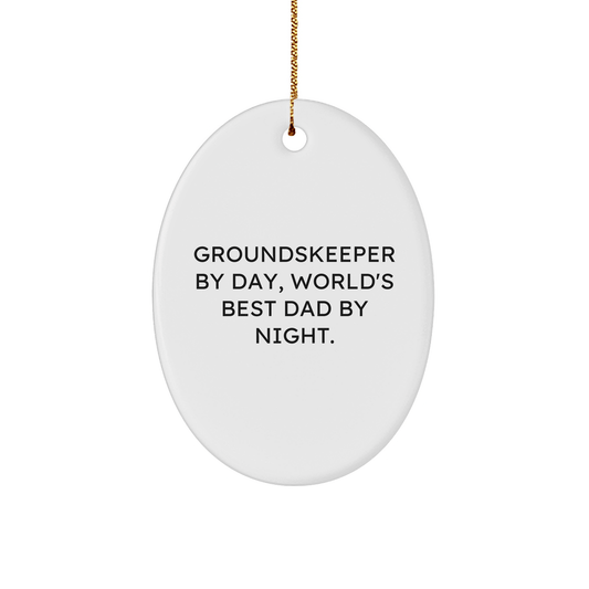 groundskeeper By Day, World's Best Dad By Night Oval Ornament Gifts from Men, for groundskeepers, Funny Christmas Unique Gifts