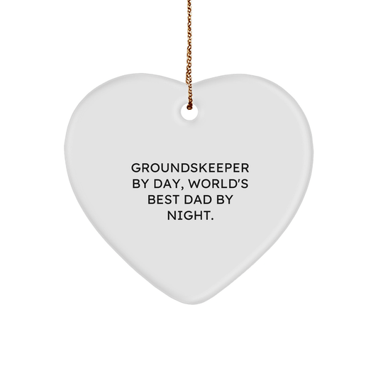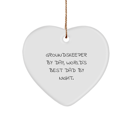 groundskeeper Gifts from Friends - Funny Heart Ornament for Christmas - 'groundskeeper By Day, World's Best Dad By Night.'