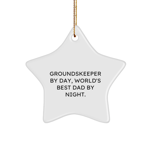 groundskeeper Gifts from Men, Gifts for groundskeeper By Day, World's Best Dad By Night. - Star Ornament for Christmas
