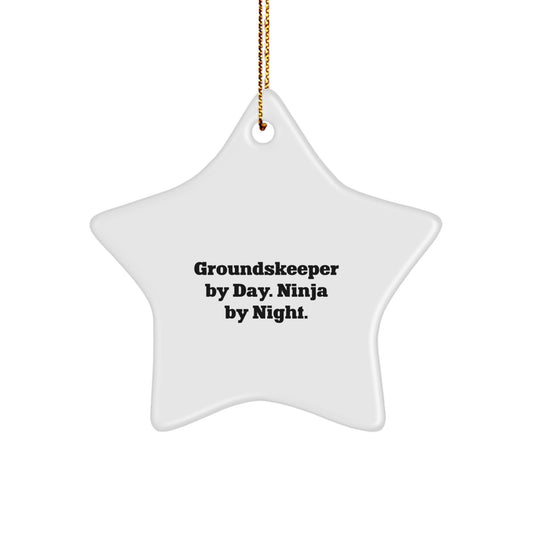 groundskeeper Gifts by Day, Ninja by Night, Handcrafted Star Ornament for Christmas, Gifts from Friends and Family
