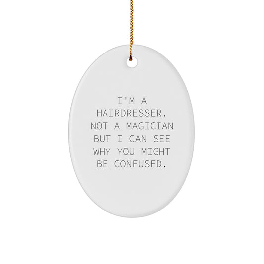 Funny Hairdresser Gifts from Friends for Hairdresser, Oval Ornament Christmas Unique Gifts, I'm A Hairdresser. Not A Magician But I Can See Why You Might Be Confused.