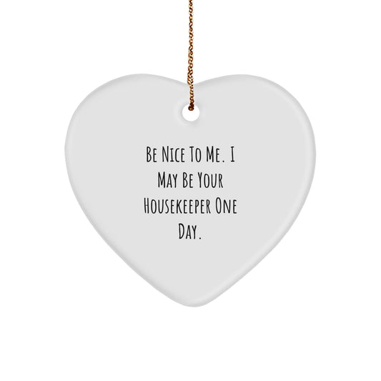 Funny Housekeeper Gifts, 'Be Nice To Me. I May Be Your Housekeeper One Day.' Heart Ornament for Housekeeper, Christmas Unique Gifts from Friends, Christmas Unique Presents for Housekeeper