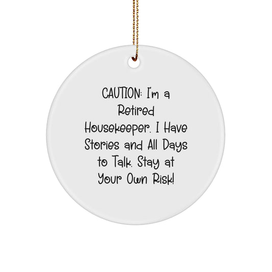 Funny Housekeeper Gifts, 'Caution: I'm A Retired Housekeeper...' Circle Ornament, White, Christmas Unique Gifts from Friends to Housekeeper