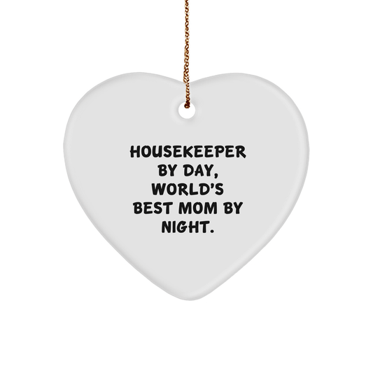 Funny Housekeeper Gifts for Housekeeper By Day, World's Best Mom By Night., Heart Ornament for Christmas from Family