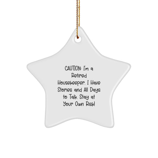 Funny Housekeeper Gifts from Friends, Christmas Unique Festive Star Ornament for Housekeeper, Caution: Stay At Your Own Risk!