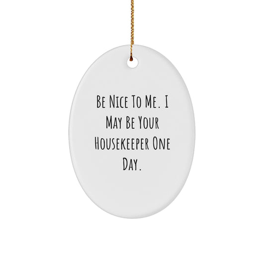Funny Housekeeper Oval Ornament, Gifts from Friends to Housekeeper, 'Be Nice To Me. I May Be Your Housekeeper One Day.', Christmas Unique Gifts
