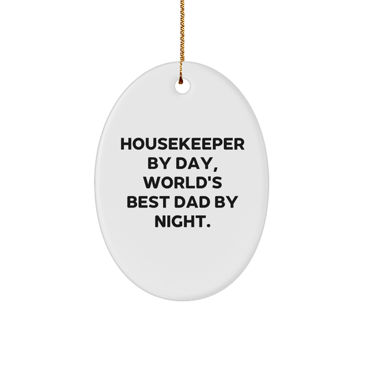 Housekeeper Gifts, Oval Ornament, Funny Quote, 'Housekeeper By Day, World's Best Dad By Night.', Christmas Unique Gifts from Family to Housekeeper