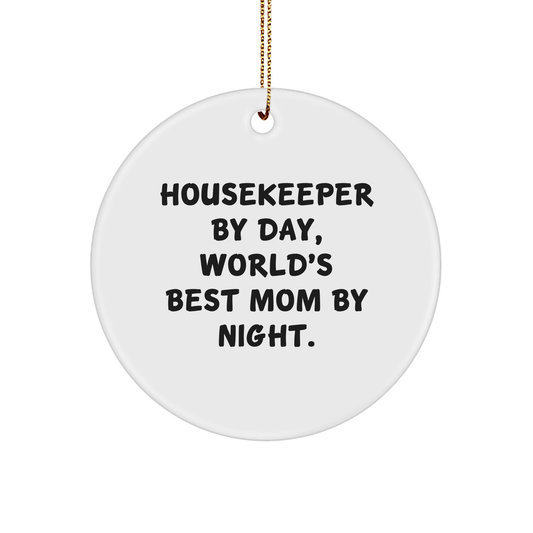 Housekeeper's Humor, Gifts from Family for Housekeeper, Circle Ornament By Day, World's Best Mom By Night, White Christmas Unique Gift