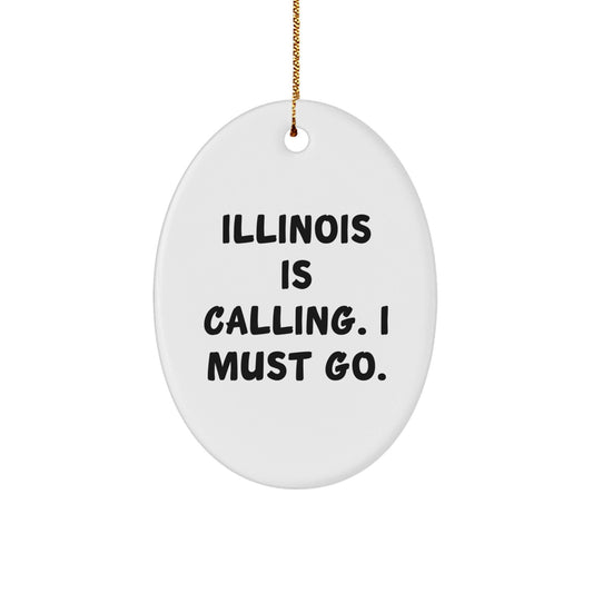 Illinois Calling Gifts from Friends for Illinois Enthusiasts - Oval Ornament with 'Illinois Is Calling. I Must Go.' Quote, Christmas Unique Gifts