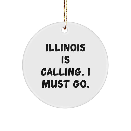 Illinois Calling Gifts from Friends to Family - Christmas Circle Ornament with Funny Quote, 'Illinois Is Calling. I Must Go.'