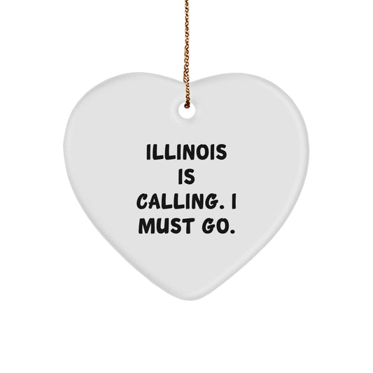 Illinois Heart Ornament, 'Illinois Is Calling. I Must Go.' Quote, Gifts from Friends to Illinois Lovers, Unique Christmas Unique Gift