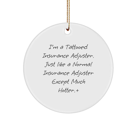 Tattooed Insurance Adjuster Gifts for Men, Insurance Adjuster Circle Ornament with Funny Quote, Christmas Unique Gifts from Friends, Coworkers, Family