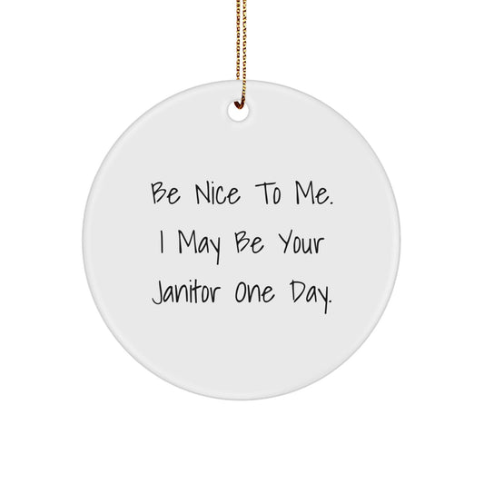 Funny Janitor Gifts from Friends - Be Nice To Me. I May Be Your Janitor One Day. Circle Ornament for Janitor, Christmas Unique Gifts