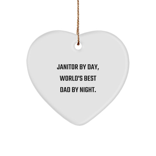 Janitor Gifts from Men, Heart Ornament by Day, World's Best Dad By Night. - Funny Janitor Christmas Decorations